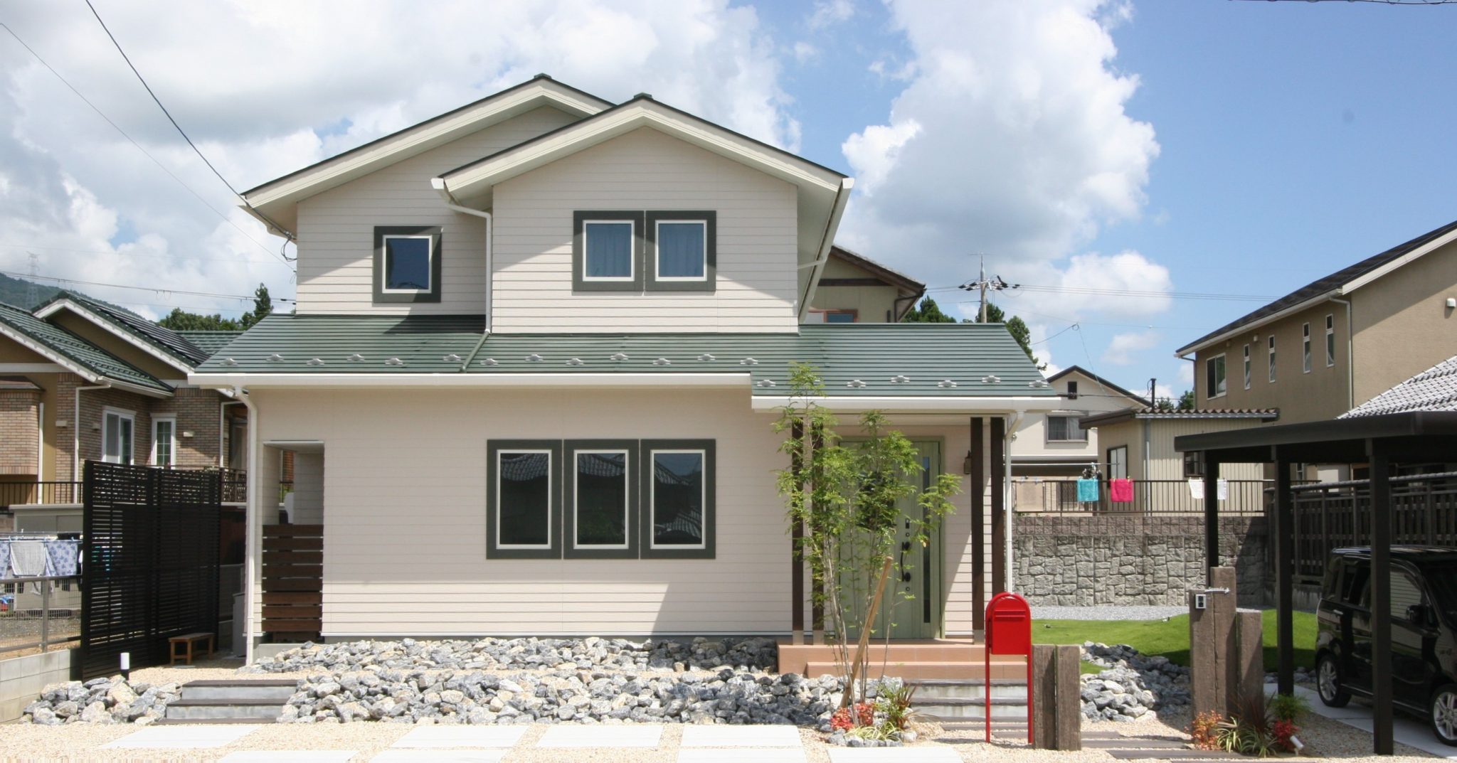 2020年05月07日 レポート 木を感じるアメリカンな家 米原市 木の香りを感じるアメリカンスタイルの家 ▼外観 鎧張り風のホワイトの外壁にグリーンの屋根と窓枠を使用し、さわやなか外観に仕上げています。 ▼... /続きを読む